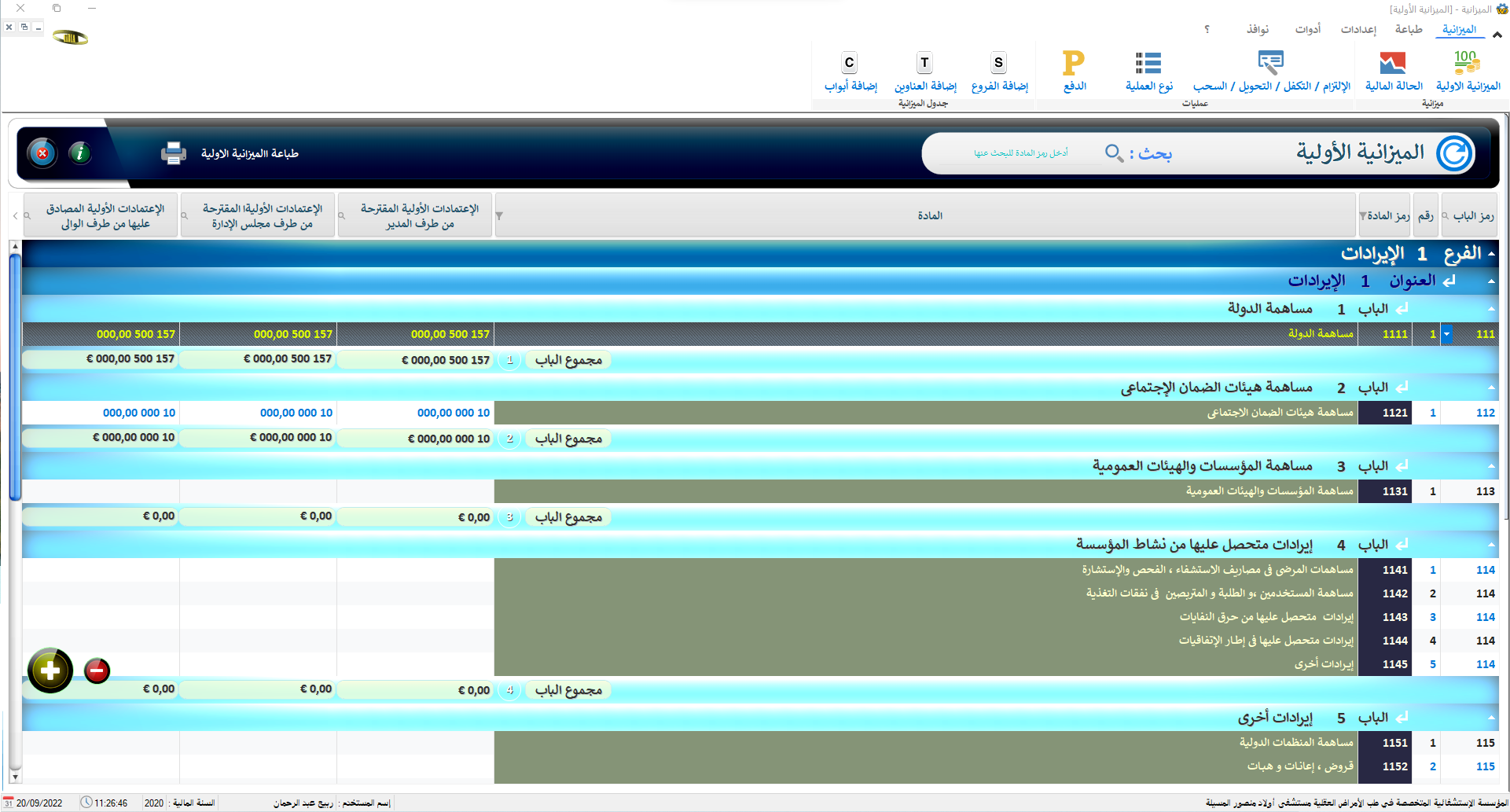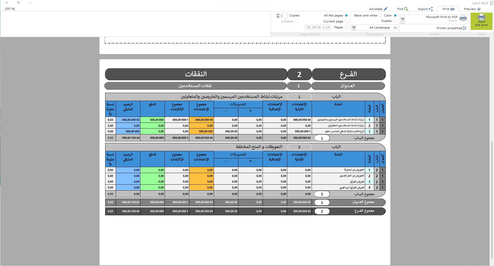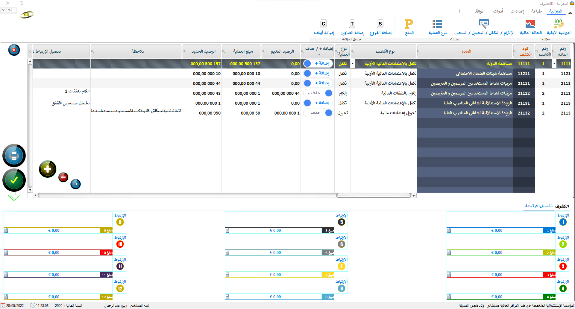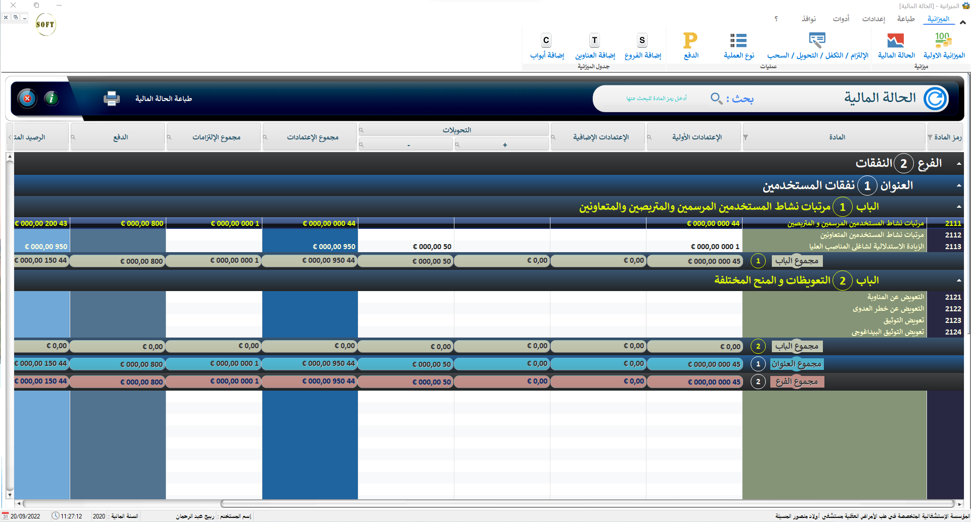 برنامج الميزانية لتنظيم وإعداد الميزانية إلى غاية الحالة المالية