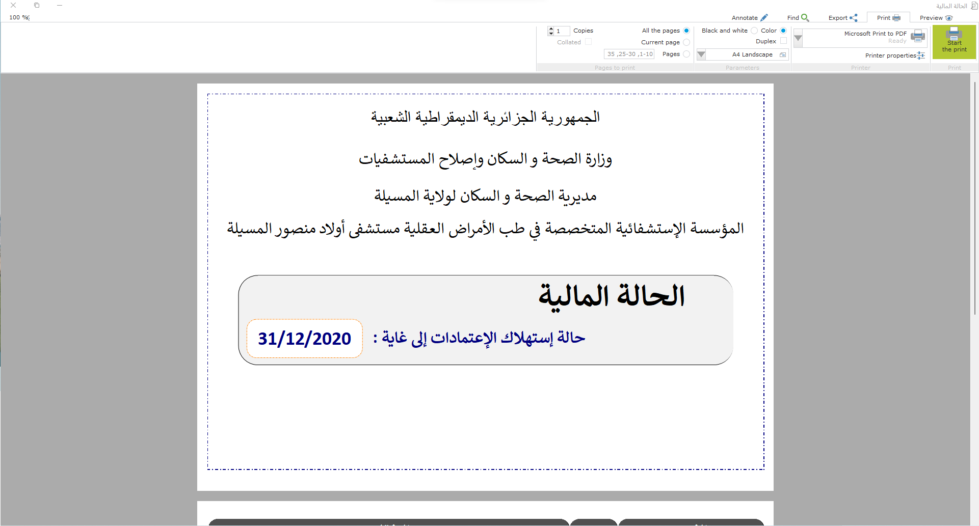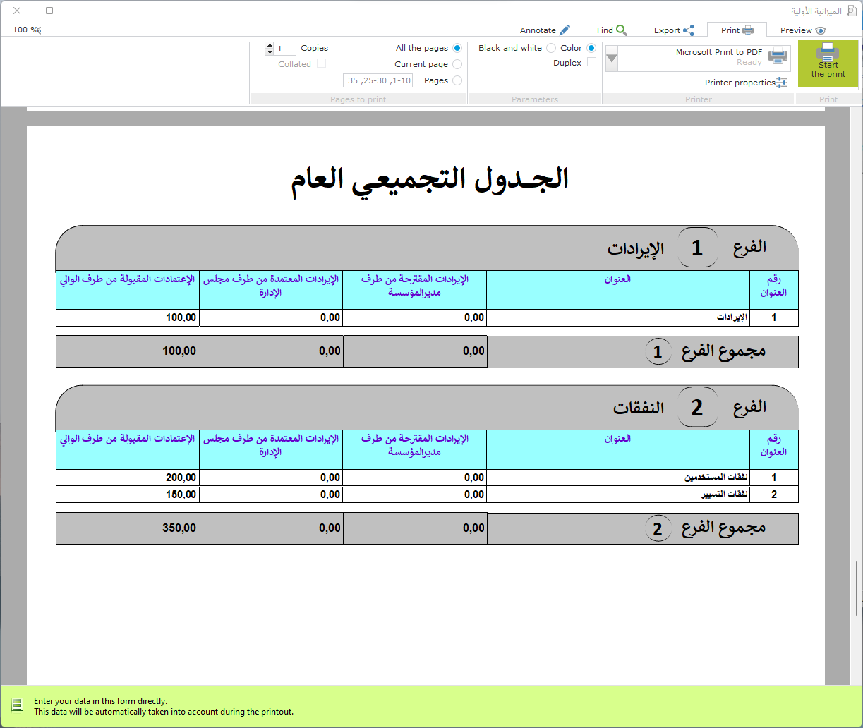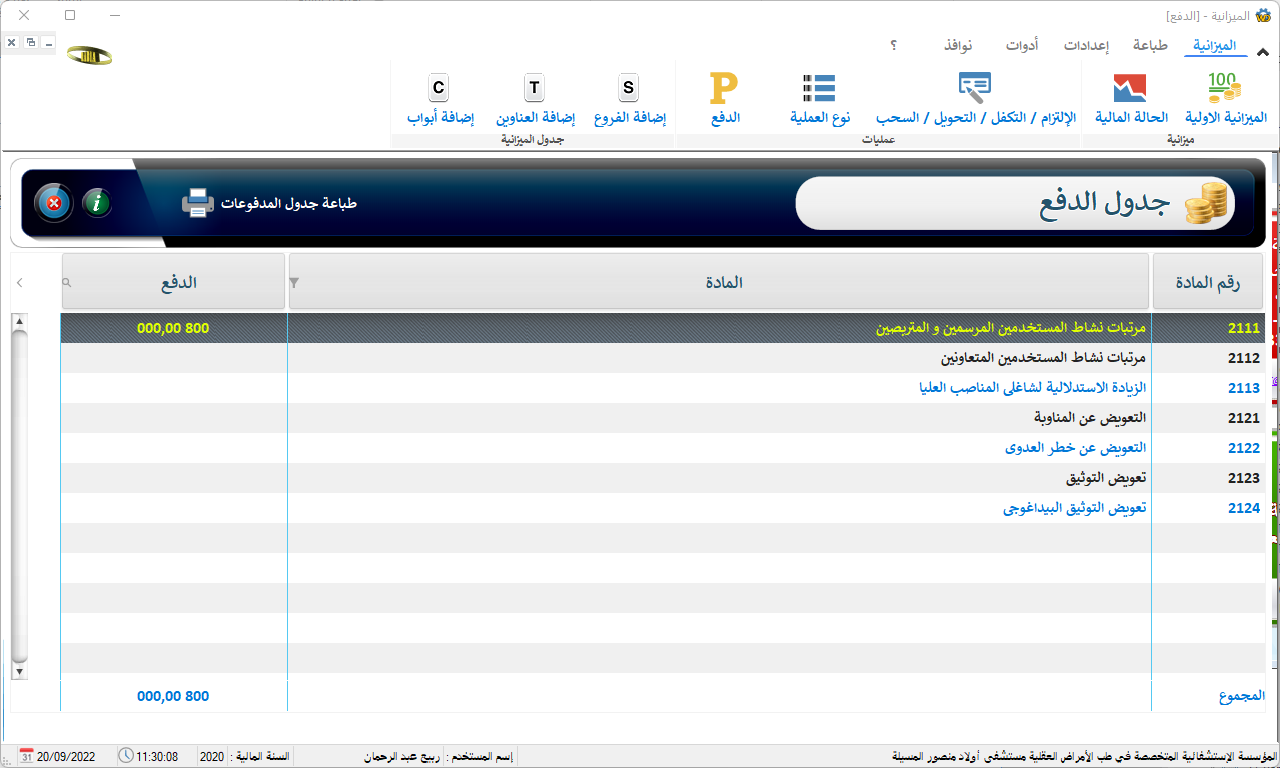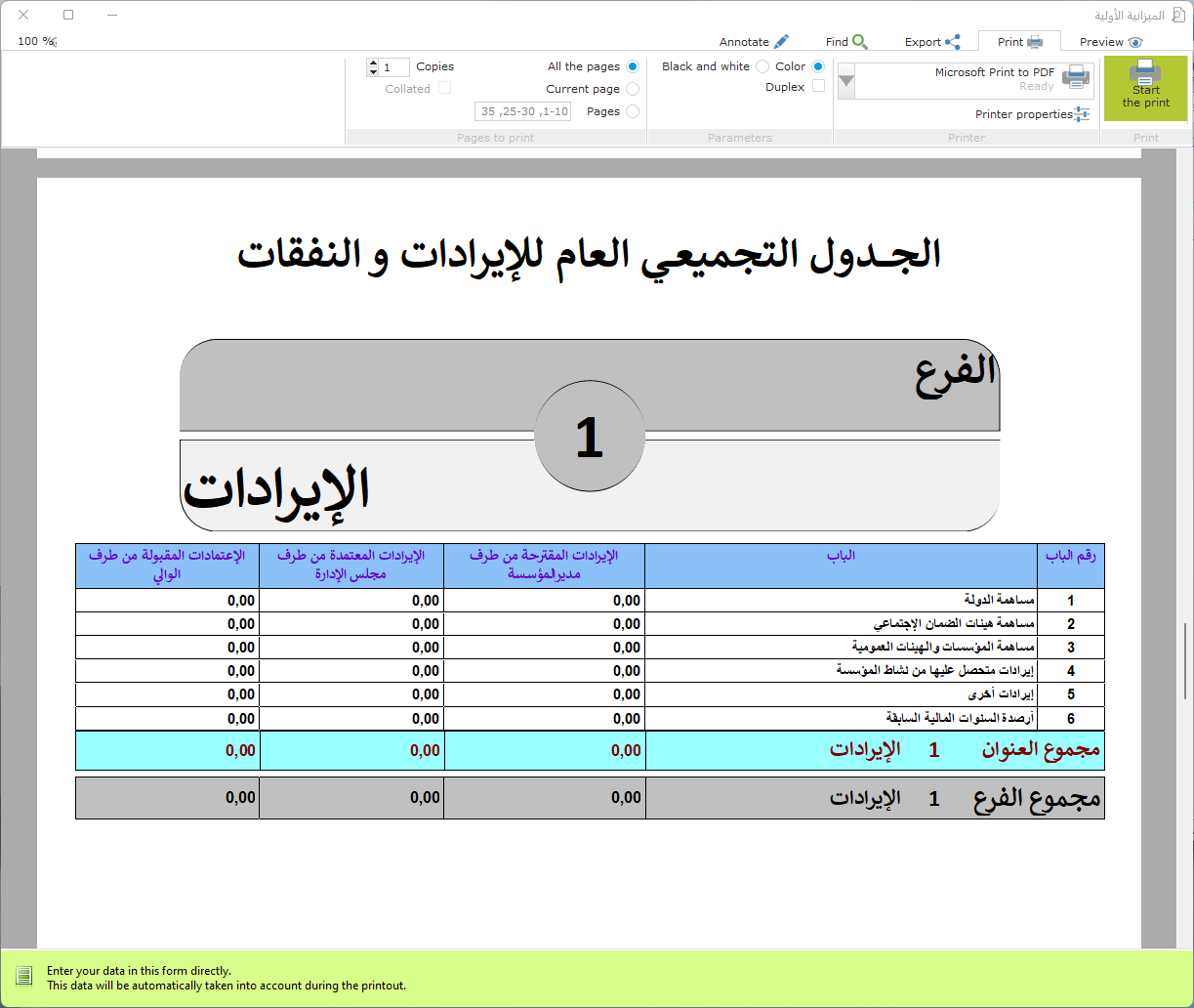برنامج الميزانية لتنظيم وإعداد الميزانية إلى غاية الحالة المالية