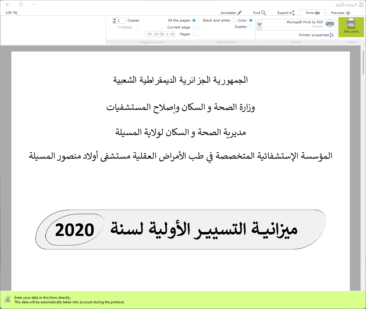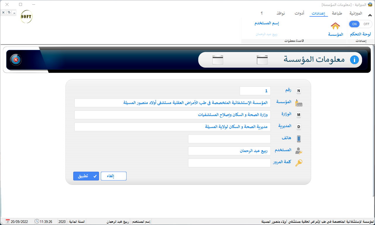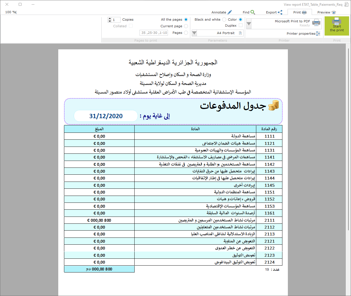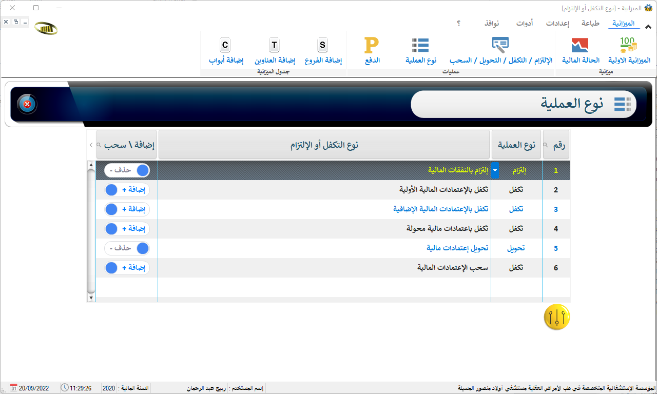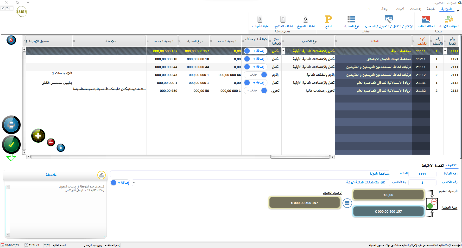 برنامج الميزانية لتنظيم وإعداد الميزانية إلى غاية الحالة المالية